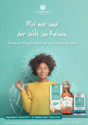 Dépliant DIN A5 de 6 pages sur Regulatpro® Active DTX et Dr. Niedermaier® Detox Pure.